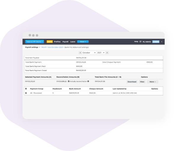 The RHB Reflex Premium Plus integration with Talenox allows for seamless automation and disbursement of salary and statutory payments (EPF, SOCSO, EIS and PCB) on pay day, so you can always pay your employees on time.